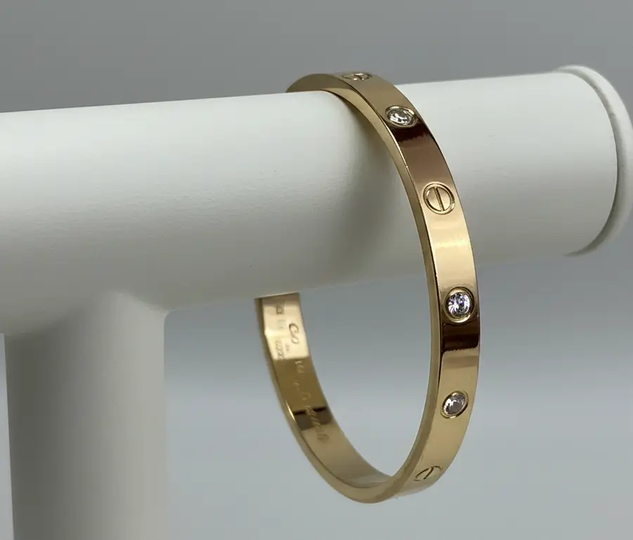 Designed specially for slender wrists, the Cartier Bracelet For Thin Wrist offers a sleek, snug fit without feeling loose or bulky. Its refined gold-tone finish paired with iconic screw detailing and subtle crystal accents gives it a timeless luxury appeal.