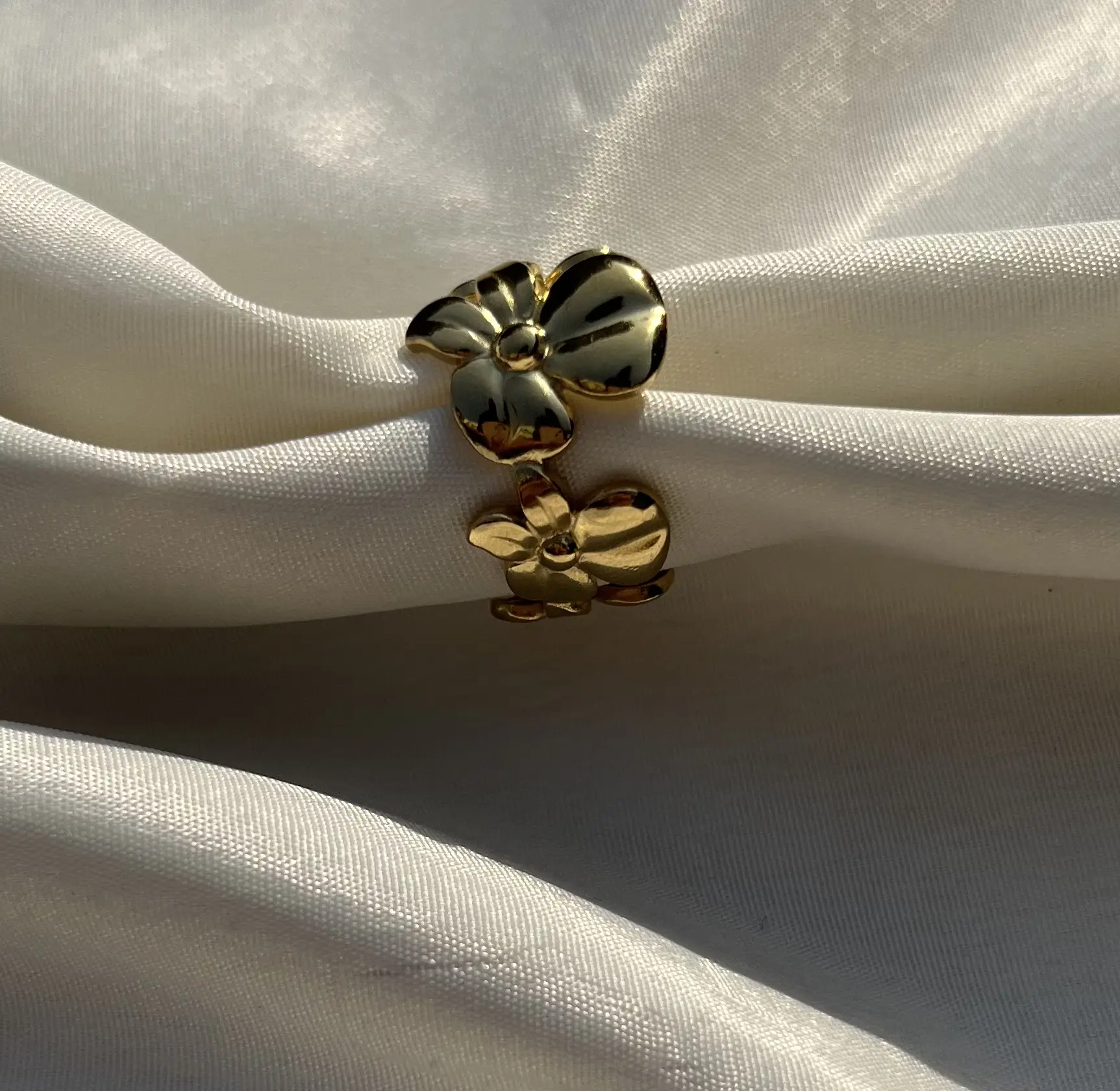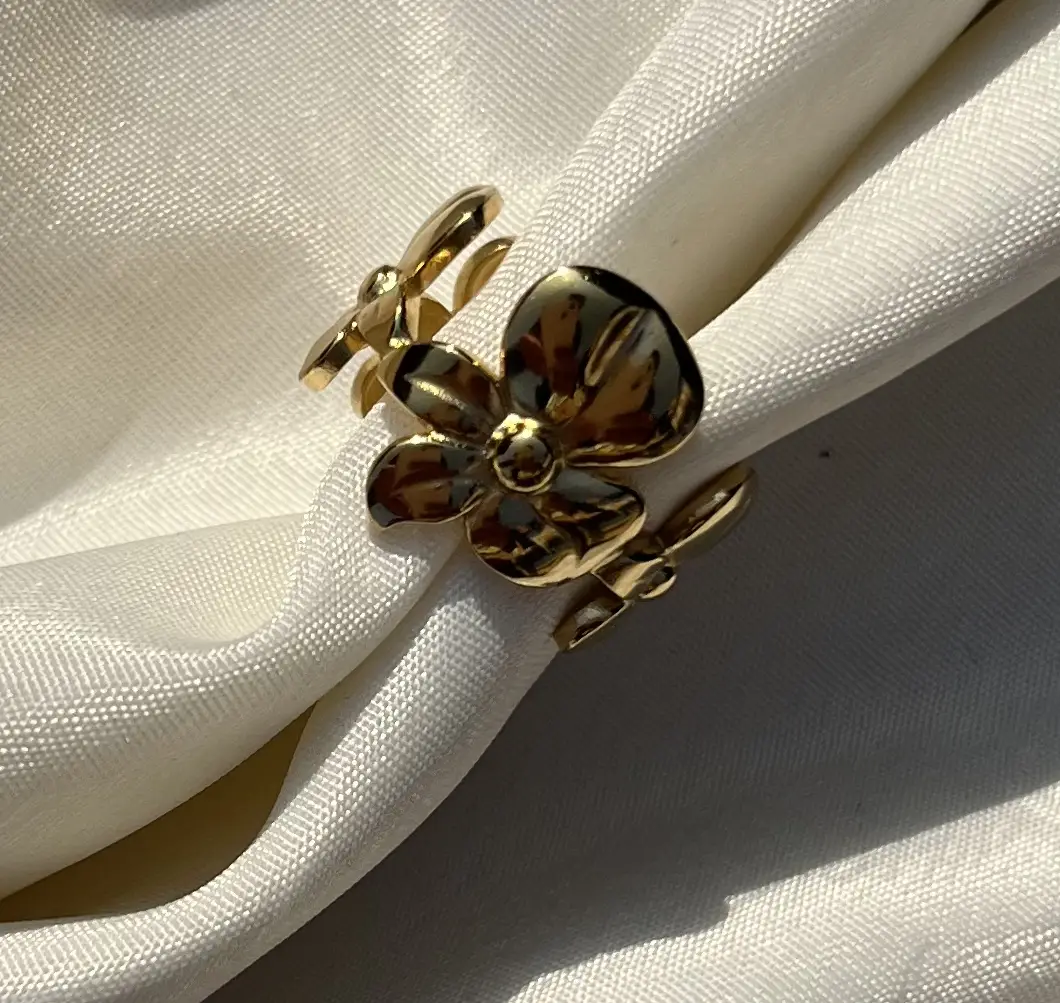 Pair this anti-tarnish golden flower ring with minimalist bracelets or a dainty necklace for a chic, balanced look. It complements both casual daytime outfits and elegant evening attire. Layer it with other gold/anti-tarnish rings for a trendy, stacked style.